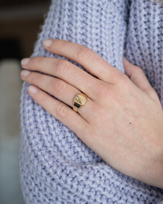 Rectangular Brushed Signet Ring 18k Yellow Gold