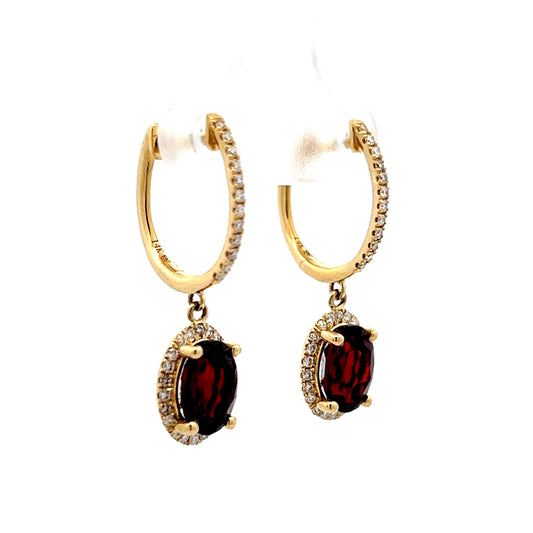 .60 Oval Garnet & Diamond Earrings in 14k Yellow Gold