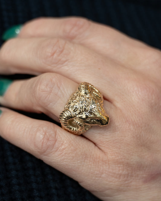 .06 Men's Vintage Rams Head Ring in 14k Yellow Gold