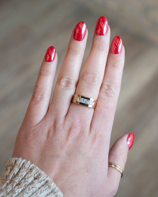 3.52 Vintage Men's Bloodstone Cocktail Ring in 18k
