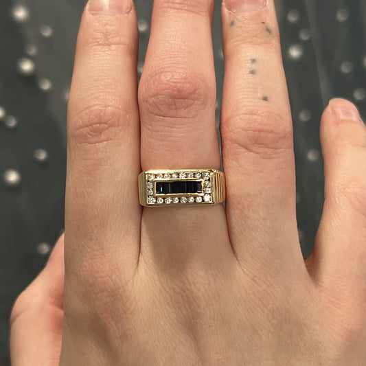 Textured Men's Sapphire & Diamond Statement Ring in 14k Yellow Gold