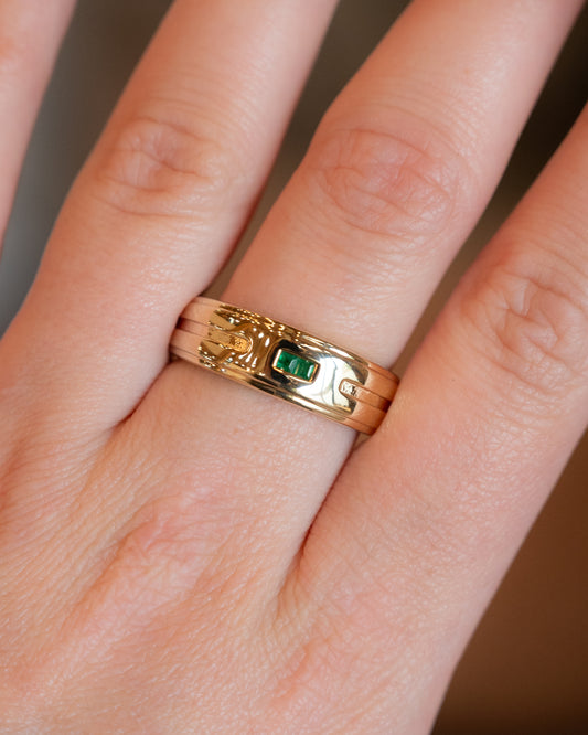 .09 Men's Flush Set Emerald Wedding Band in 10k