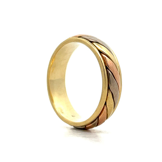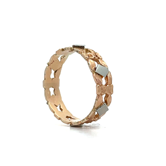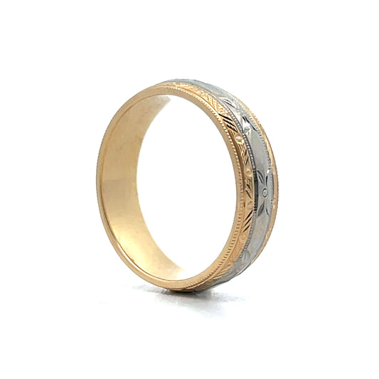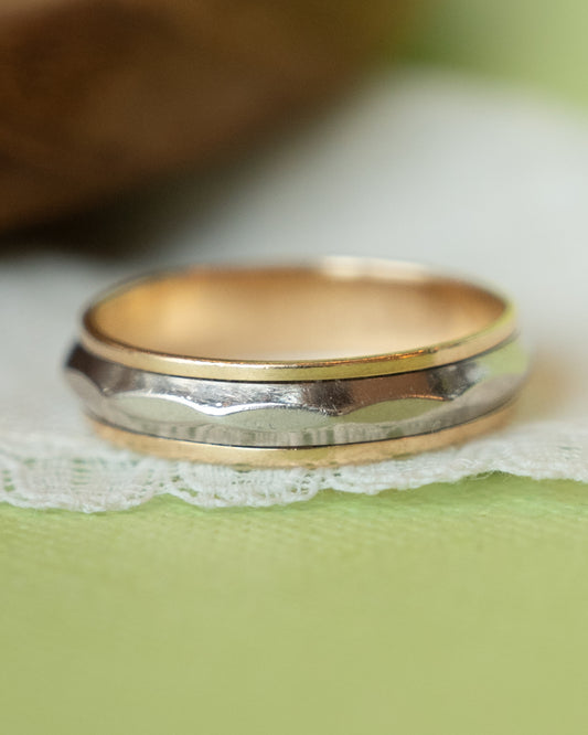 Vintage Mens Retro Geometric Two-Tone Wedding Band 14k