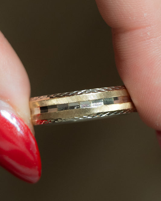 Mens Vintage 1940's Geometric Two-Tone Wedding Band 14k