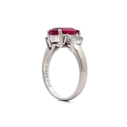 2.78 Oval Cut Ruby & Diamond Accent Engagement Ring in Platinum