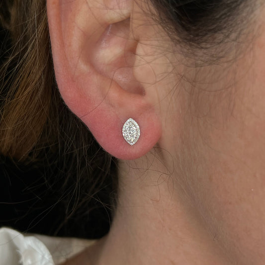 Marquis Pave Cluster Diamond Earrings 14K White Gold