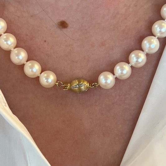 Necklace Modern Pearls & .10 Round Brilliant Cut Diamonds in 14k Yellow Gold