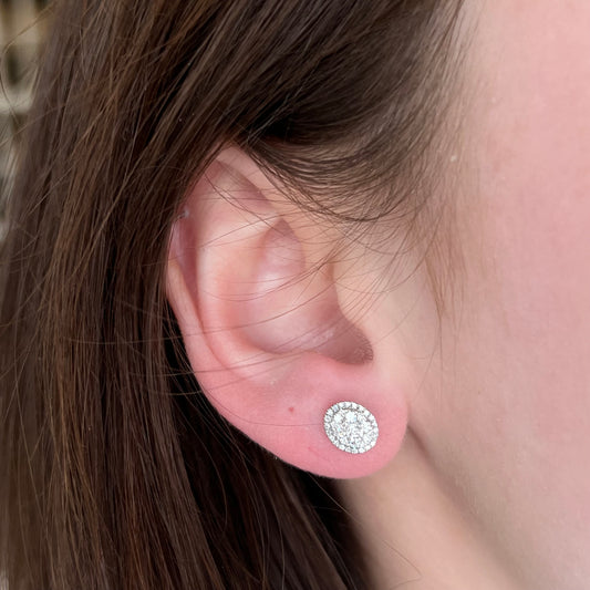 Pave Cluster Diamond Disk Earrings 14K White Gold