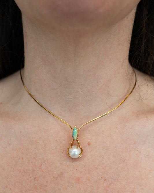 Opal & Pearl Collar Necklace in 18k Yellow Gold