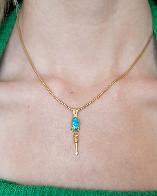 Cabochon Opal & Diamond Pendant Necklace 14k & 18k Gold