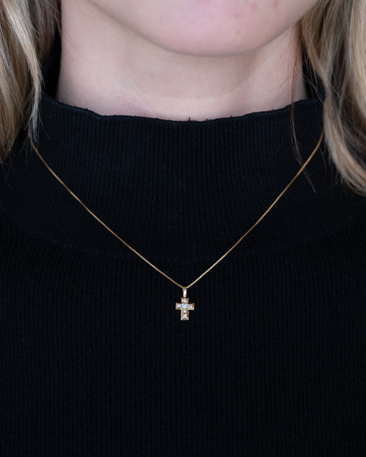 .13 Diamond Cross Pendant Necklace 14k Yellow Gold
