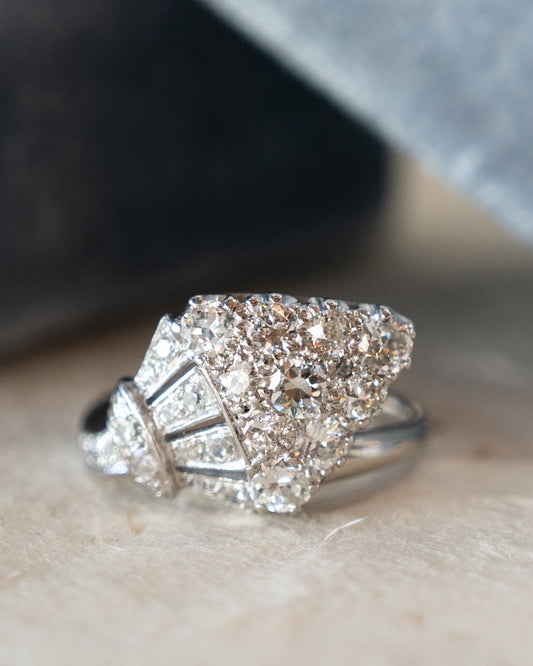 2.10 Vintage Old European Diamond Cocktail Ring Platinum