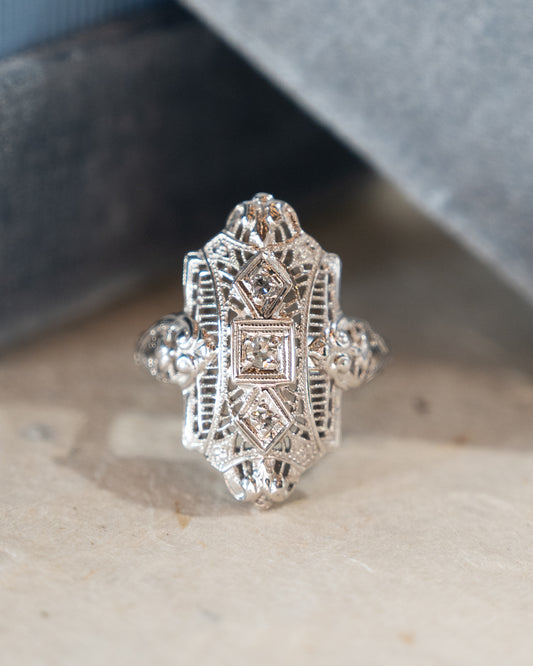 .04 Vintage Art Deco Diamond Filigree Cocktail Ring 14k