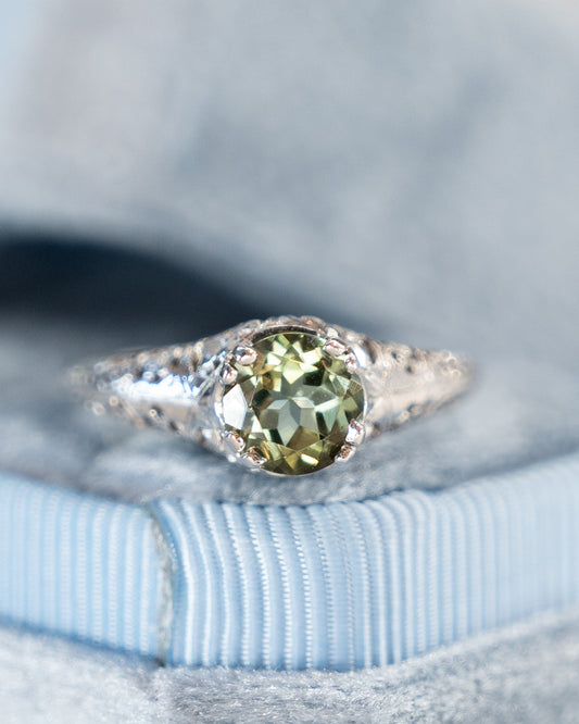 .12 Flush Set Peridot Stacking Ring 14k Yellow Gold