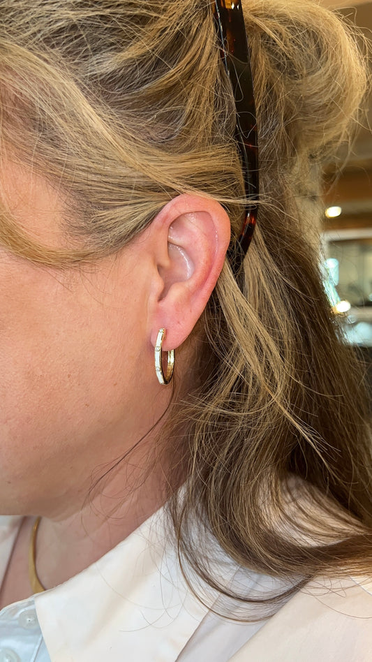 .10 White Enamel & Diamond Hoop Earrings in 14k