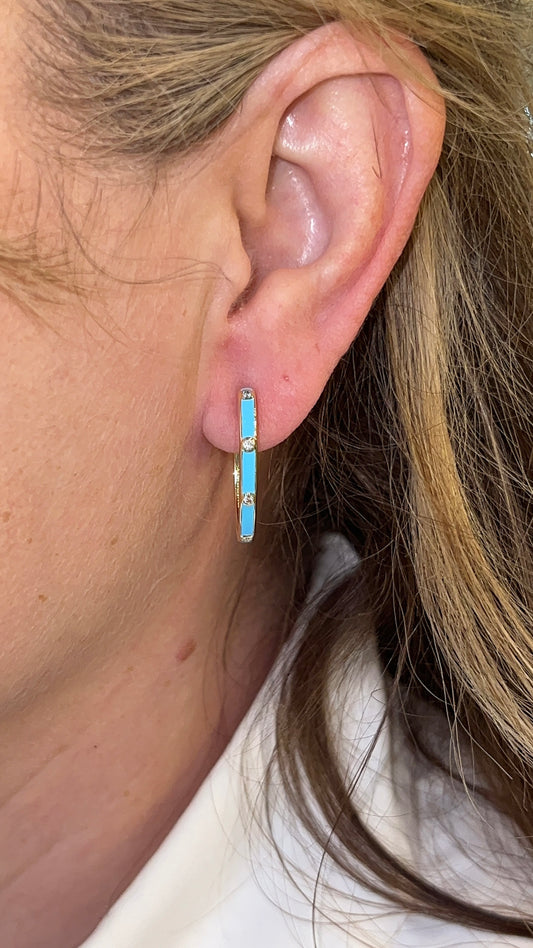 .10 Blue Enamel & Diamond Hoop Earrings in 14k