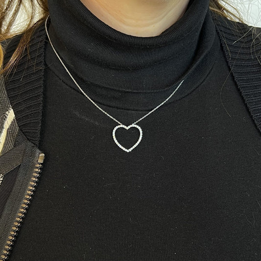 Diamond Cut-Out Heart Pendant Necklace in 14k White Gold