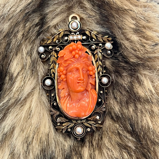 Cabochon Cut Coral Dangle Earrings in Yellow Gold by Stephanie Lake Design