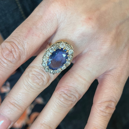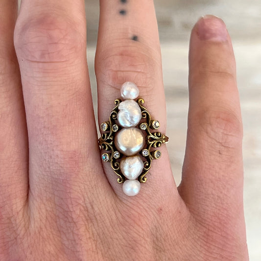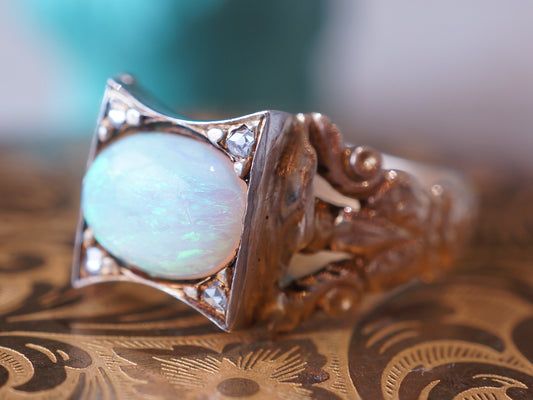 Victorian Diamond & Opal Cocktail Ring in Sterling Silver & Gold