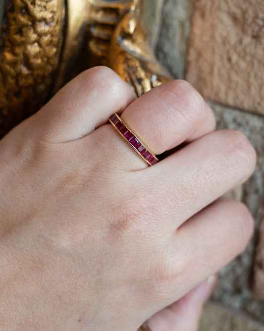 Princess Cut Square Eternity Stacking Ring in 18k Yellow Gold