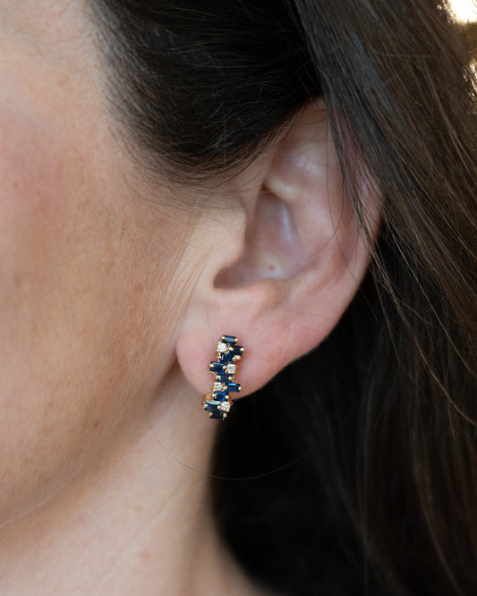 .72 Blue Topaz & Diamond Hoop Earrings in 14k