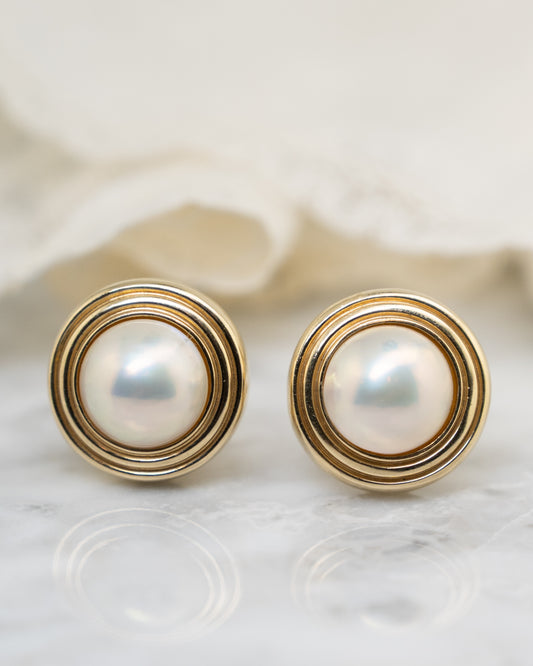 Mabe Pearl Oversized Stud Earrings in 18k Yellow Gold