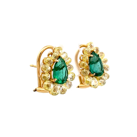 2.52 Emerald & Diamond Stud Earrings in 18k Yellow Gold