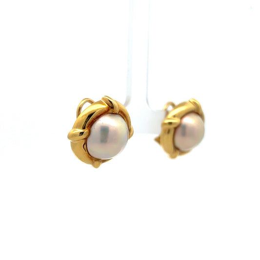 Mabe Pearl Stud Earrings in 18k Yellow Gold