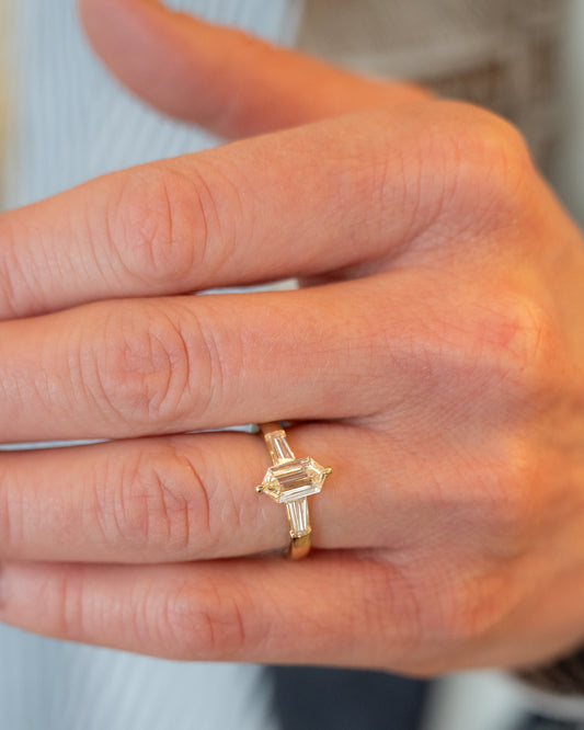 1.05 Hexagon Three Stone Engagement Ring in 14k