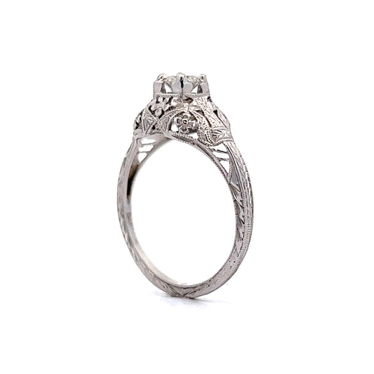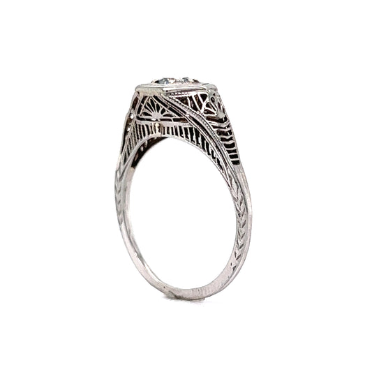 Antique Solitaire Diamond Ring Art Deco Filigree in 18k
