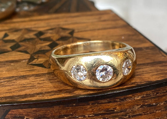 1950's Three Stone Diamond Cocktail Ring 14k Yellow Gold