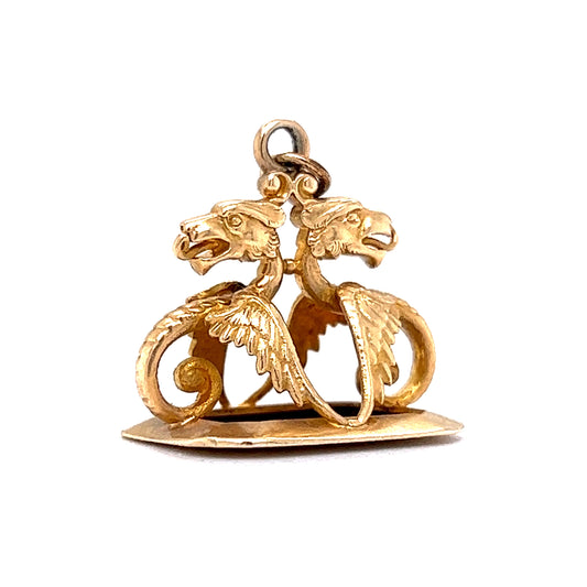 Vintage Dragon Pendant Charm in 14k Yellow Gold