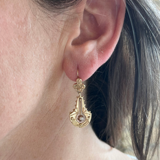 Vintage Victorian Drop Earrings 14k Yellow Gold
