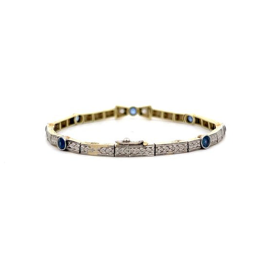 Vintage Retro Sapphire & Diamond Bracelet in 14k/Platinum