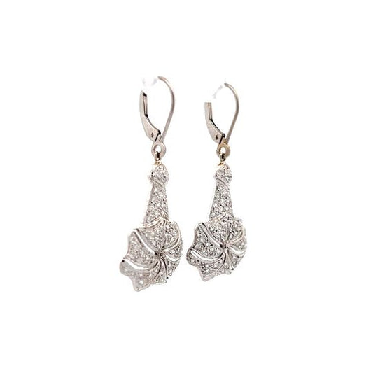 1.00 Vintage Diamond Drop Earrings in 14k White Gold