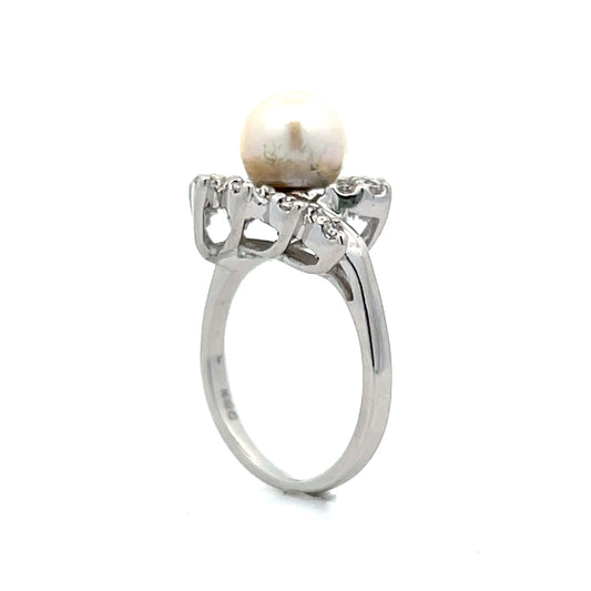.30 Vintage Mid-Century Pearl & Diamond Ring in 14k