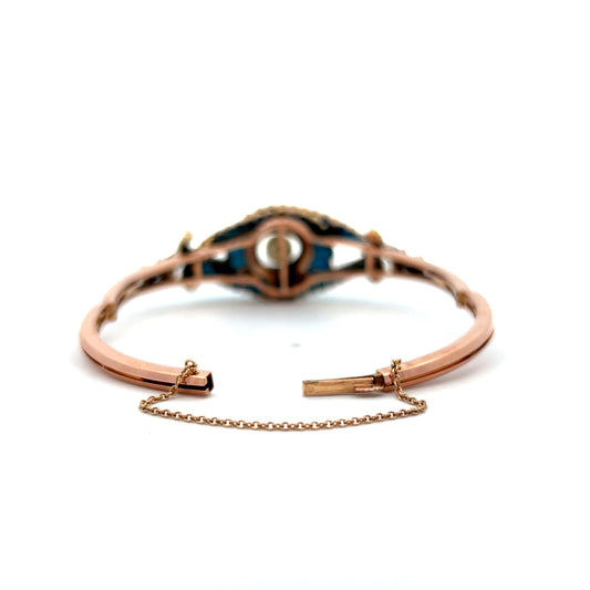 1.25 Victorian Diamond, Tuquoise & Pearl Bracelet in 18k