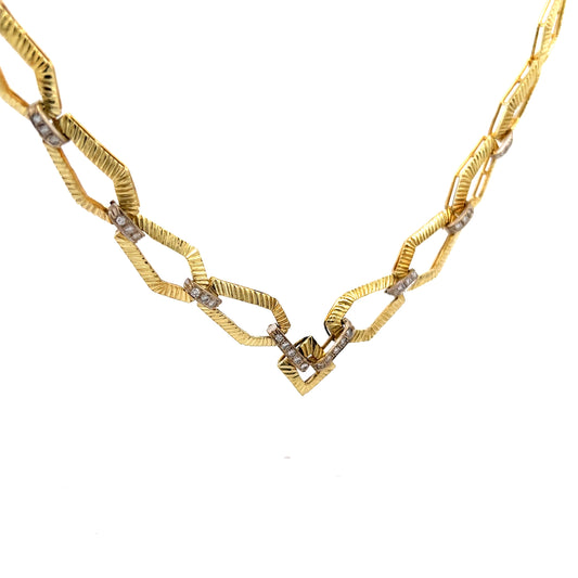 Vintage Mid-Century Diamond Link Necklace in 18k Yellow Gold