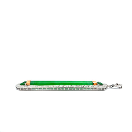 Vintage 1920s Art Deco Jadeite & Diamond Pendant in Platinum