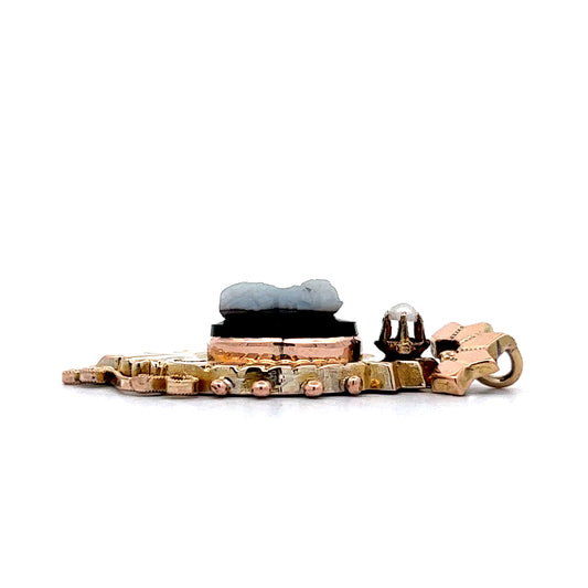 Victorian Pearl Cameo Pendant In 14K Yellow Gold