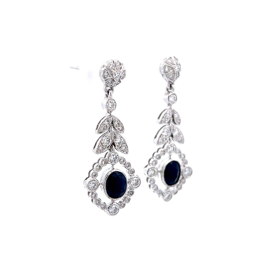 1.54 Sapphire & Diamond Dangle Earrings in 18k White Gold