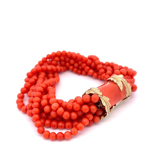 Vintage 1960's Beaded Coral Bracelet in 14k Yellow Gold