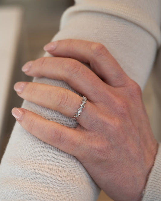 .09 Leaf Textured Diamond Wedding Band 14k