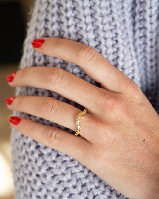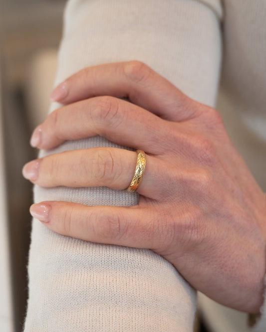 4mm Chevron Engraved Wedding Band 18k Yellow Gold