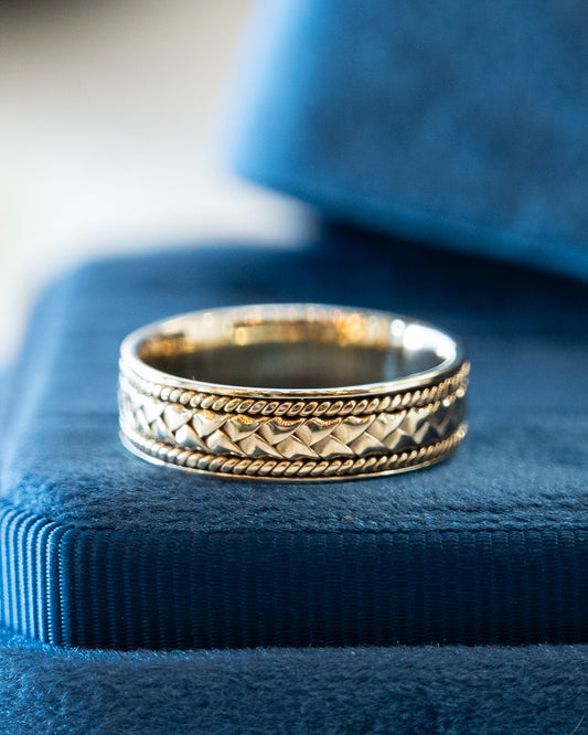Mens 6mm Rope Texture Wedding Band 14k Yellow Gold