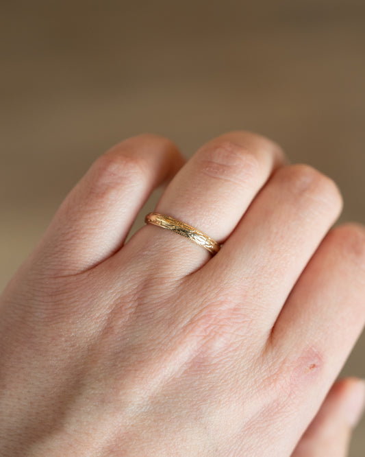 Wheat Engraved Contour Wedding Band 14k Yellow Gold