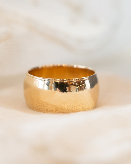 9.5mm Step Edge Cigar Wedding Band 14k Yellow Gold