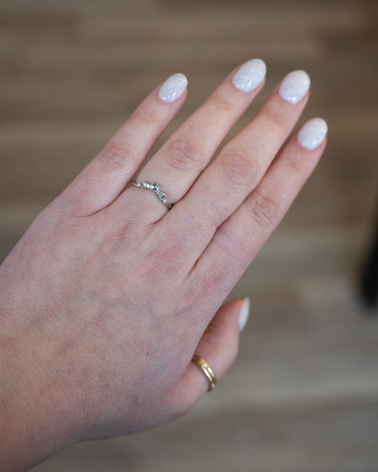 .35 Rose Cut Diamond Curved Wedding Band 14k White Gold