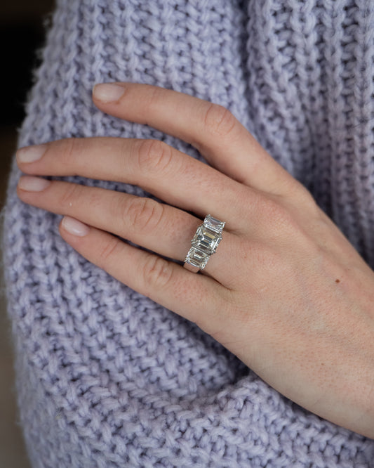 2.71 Emerald Diamond Three Stone Engagement Ring 14k