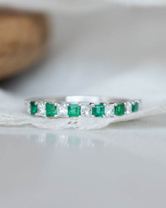Emerald & Diamond Stacking Ring in 14k White Gold